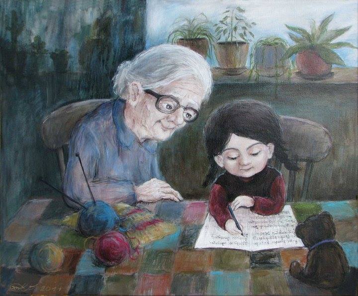 როცა დედა სკოლისთვის გამამზადებდა სკოლისაკენ მიმავალს ბებია უცილობლად ბოლო კორექციას შეიტანდა ჩემს,, იმიჯში’’.გზად მიმავალს თუ თანატოლები წამომეწეოდა (რაც იშვიათად ხდებოდა რადგან ადრე უნდა მივსულიყავი და „დერეფანში„ გაკვეთილი უნდა გადამემიორებინა რაც იმდროისათვის ეს ბეჯითი მოსწავლის ,,კლიშე „იყო.)მათ ფერხულში ჩაბმულს ბებიას ოინები ნაკლებად მაჯავრებდა მაგრამ ის მაინც მომაძახებდა მისი მზრუნველი ხმით:,,წელში გეიმართე’’, ,,დატიე ჩანთას მე წამევიღებ’’ და მრავალი სხვა.