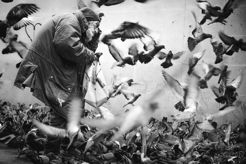 …უპოვარი ეთქმოდა ბერიკაცს. ზამთარ–ზაფხულ ერთი და იგივე, რუხი ფერის ლაბადა ეცვა, ზურგზე კი ტომარა ეკიდა. ნელი, აუჩქარებელი ნაბიჯებით დადიოდა. ხან დრამატული თეატრის წინ, ხანაც პარკში ნახავდით. გამოჩნდებოდა თუ არა მის გარშემო წრეს შეკრავდნენ ფრთოსნები. ზოგი ზურგზე შემოასკუპტებოდა, ზოგიც ხელზე ჩამოეკონწიალებოდა..იდგა მესვეტესავით, ხელს არ აუქშევდა..კმაყოფილი იმითაც რომ ამ ქვეყნად რაგაც მისია ჰქონდა. არავინ იცის ვინ იყო, საიდან მოიდოდა ან სად მიდიოდა…! ვერც გაღიმებულს ნახავდით, ვერც ვინმესტან მოლაპარაკეს. მდუმარედ იყო! თავზე დატეხილ რაღაც უბნედურებას ინახავდა საიდუმლოდ (ამას სოხუმიდან დაშორებული ვხვდები, თორემ იქ ამაზე არსოდეს დავფიქრებულვარ). ბერიკაცს თითქოს მტრედების ენა ესმოდა, საათობით იდგა წრეში და მათ ღუღუნს უსმენდა.
