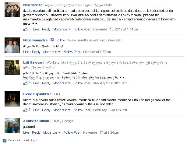 მინდა ჩემი პირადი დიდი მადლობა გადაგიხადოთ იმისათვის, რომ ეს გვერდი არსებობს. გვერდი სადაც ყოველთვის ვპოულობ კითხვაზე პასუხს და გვერდი რომლის სტუმრობის შემდეგ ერთი ათად ივსები ენთუზიაზმით და პოზიტიური განწყობით უდგები ცხოვრებას.ლონდა მიქელაძე