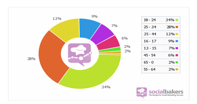 ქვემოთ მოცემული დიაგრამიდან ჩანს, რომ საქართველოში ფეისბუქის მომხმარებელთა 62%-ი 18-34 წლის ახალგაზრდებზე მოდის. ბოლო ოფიციალური სტატისტიკური ინფორმაციის მიხედვით კი, საქართველოში უმუშევართა 48,8%-ი 20-34 წლის ახალგაზრდებზე მოდის.