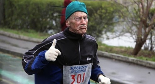 74 წლის ანდრეი ჩერკოვი მარათონში ღებულობს მონაწილეობას.